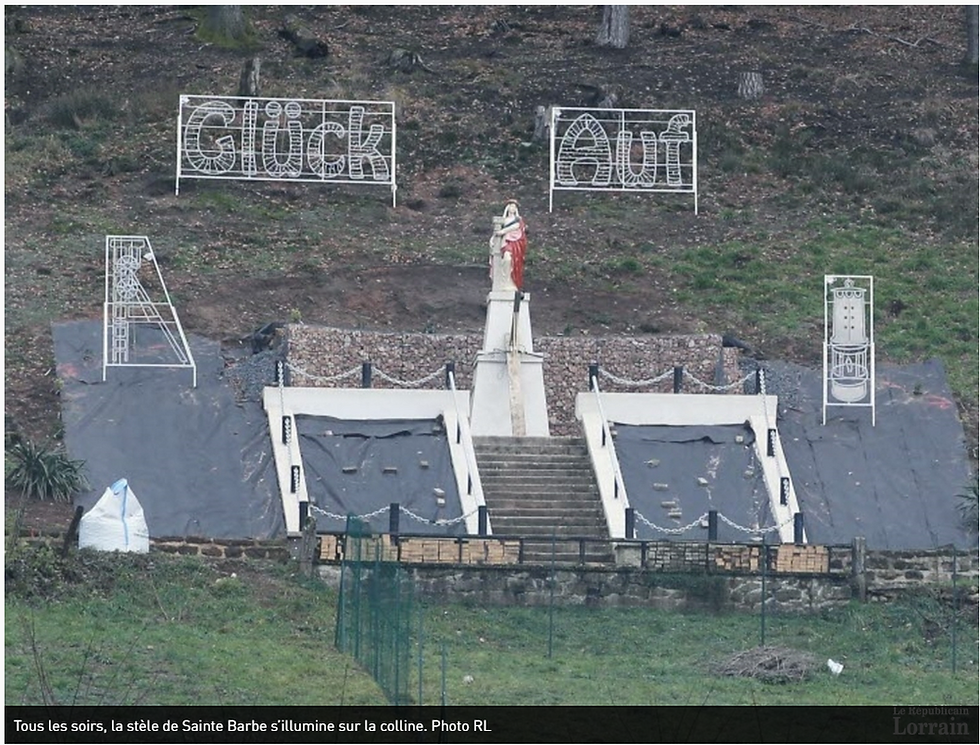 La réfection de la stèle de sainte Barbe qui domine le village de Guerting, a été marquée par l’allumage de son nouvel éclairage donnant un air solennel à la patronne des mineurs et pompiers.